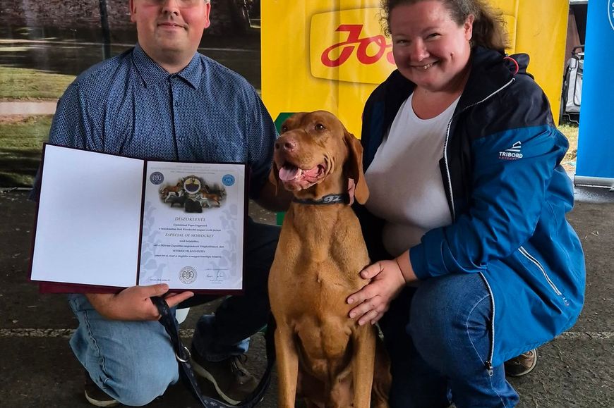 Especial of Skyrocket "Momo", elismerő díszoklevelet kapott a Magyar Ebtenyésztők Egyesületétől az idei világkiállításon elért Veterán Világgyőztes és a Legszebb Veterán címért.